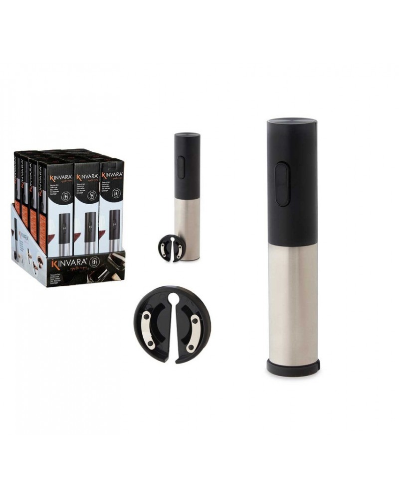 Saca rolha elétrico em acrílico e corpo em aço inoxidável preto funcionamento a pilhas, sem cabo.