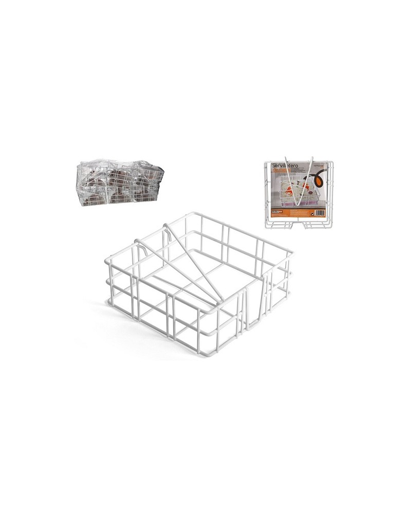 Porte guardanapos em metal branco de 18 cm X 18 cm.