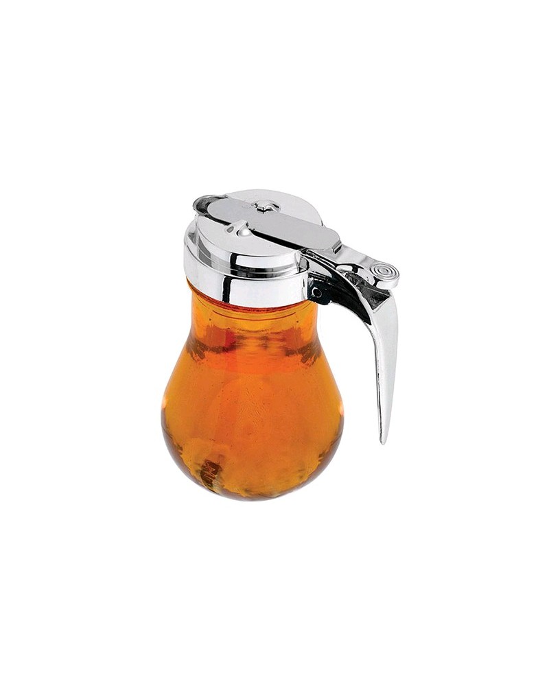 Frasco para mel em vidro, tampa com abertura em metal.