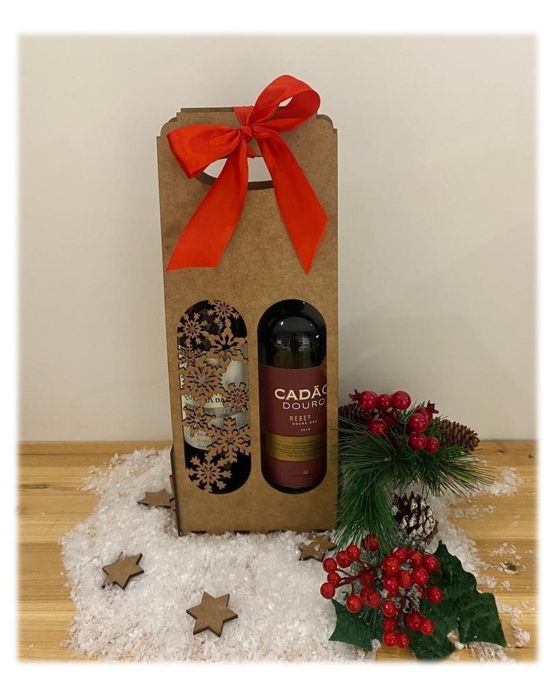 MADEIRA- CAIXA P/2 GARRAFAS C/DESENHO