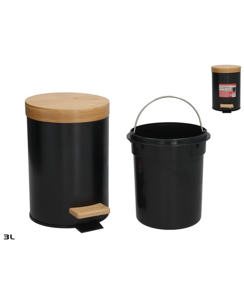 BALDE C/PEDAL 3L PRETO C/TAMPA BAMBU