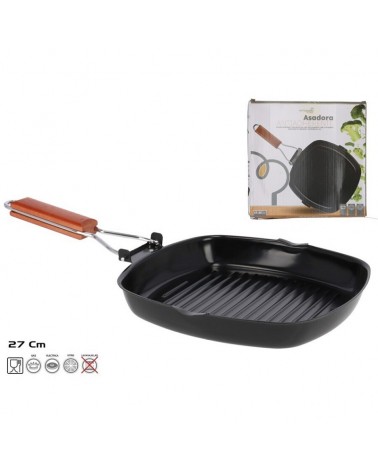 Grelhador com acabamento anti-aderente quadrado de 28 cm e pega dobrável. Apto para máquina de lavar loiça, fogão de gás, elétrico, vitocerâmicae indução.