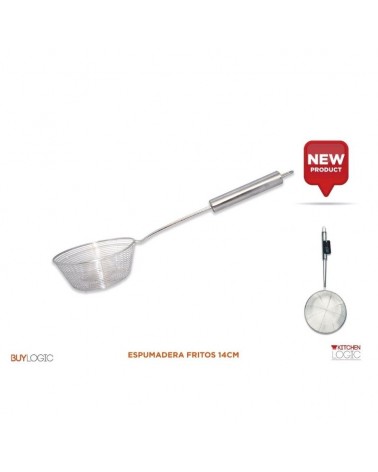 Escumadeira para fritos em inox; Diâmetro de 16 cm.