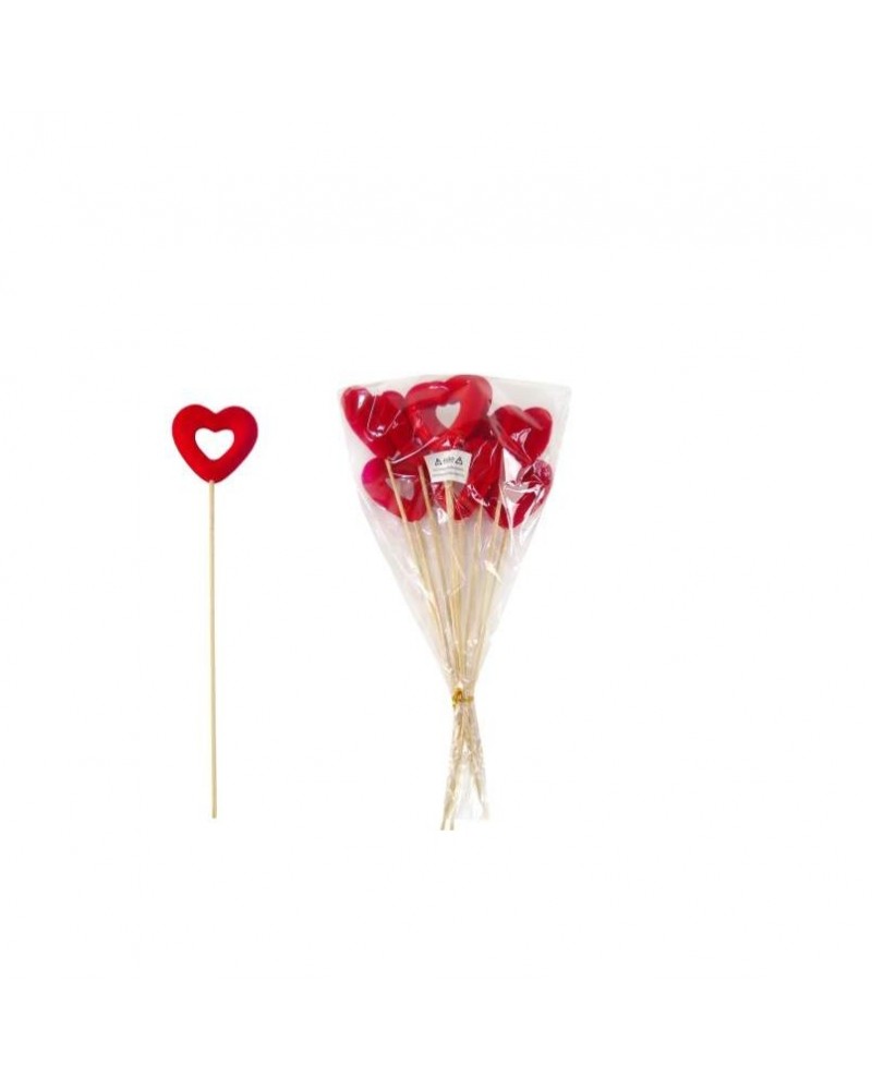 EMB. C/10 ESPETOS CORAÇAO VERM. 6x27cm